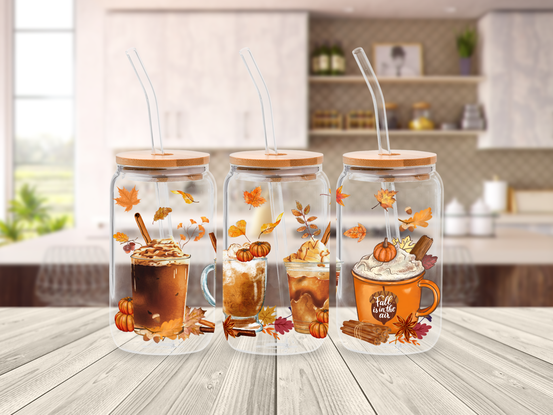 Drinkglas met Bamboe Deksel en Rietje – Herfst Vibes