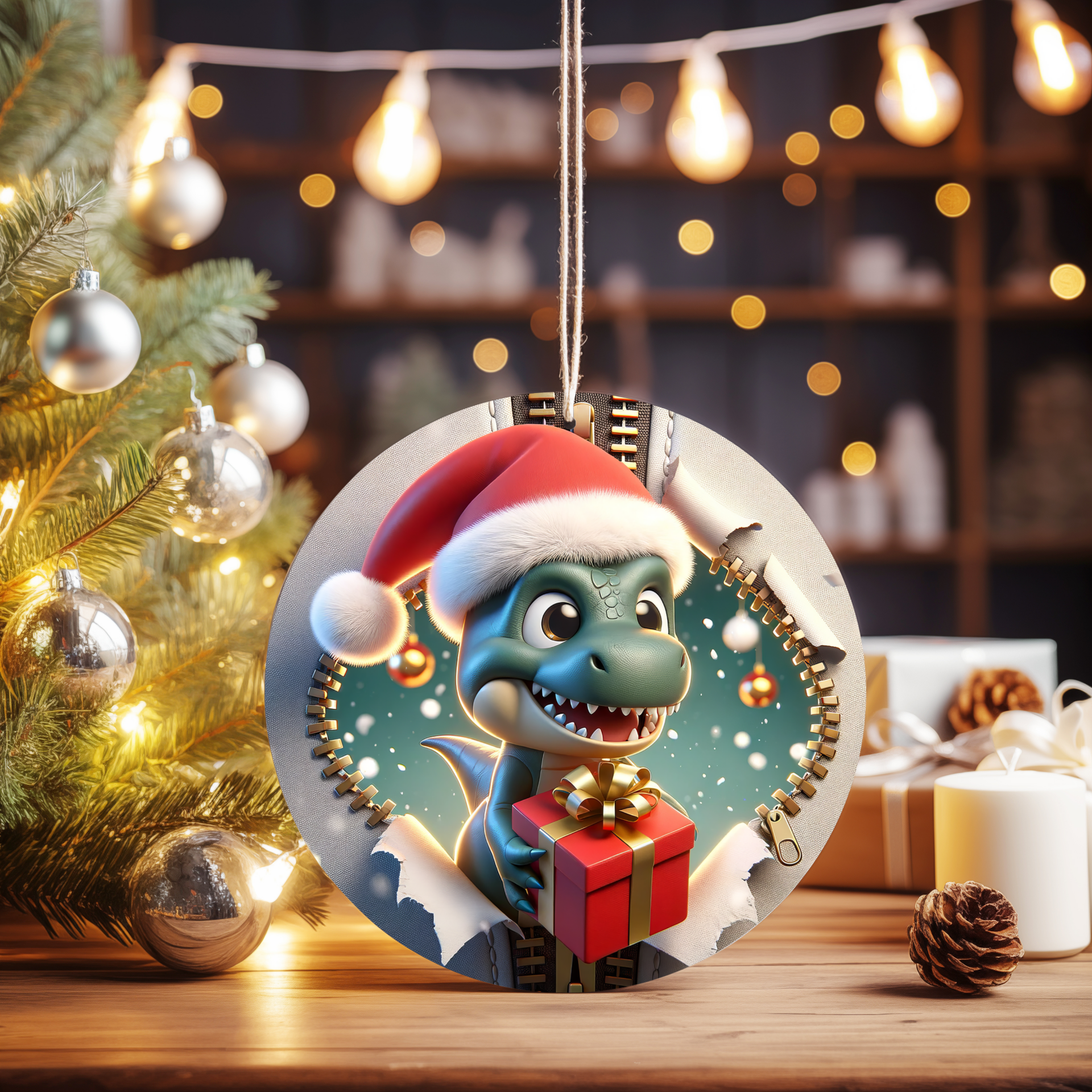 Breng een speelse en unieke touch aan je kerstboom met deze 3D keramische kerstboomhanger , met een grappige dinosaurus met kerstmuts!