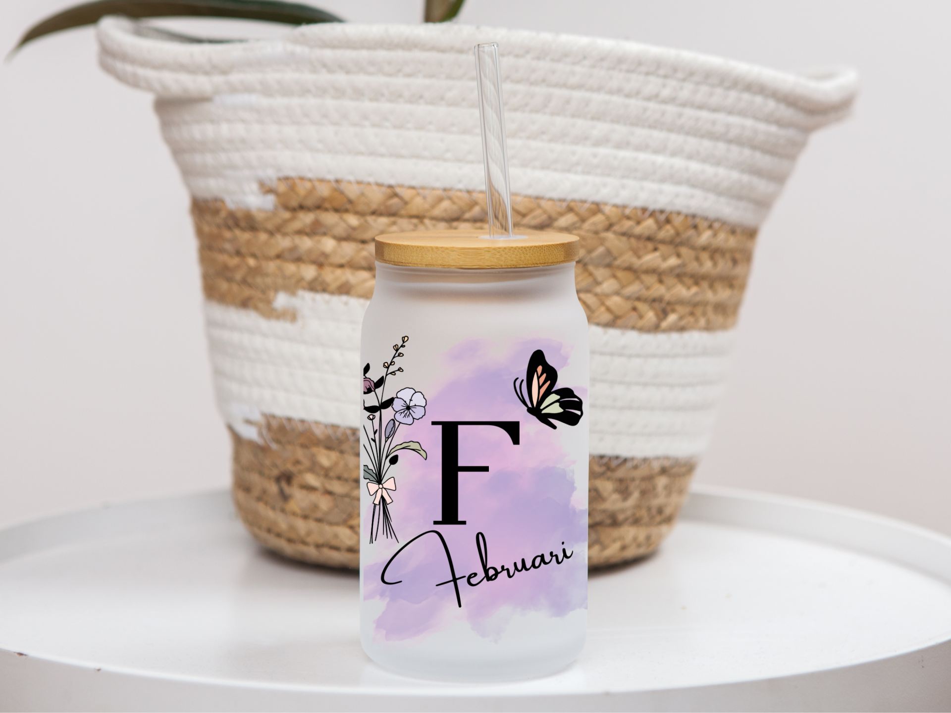 Dit stijlvolle glas is voorzien van een initiaal, naam, geboortebloem en een elegante vlinder , afgewerkt met een subtiele aquarelachtergrond in roze, paars of groen. Een uniek en betekenisvol cadeau voor jezelf of een dierbare!