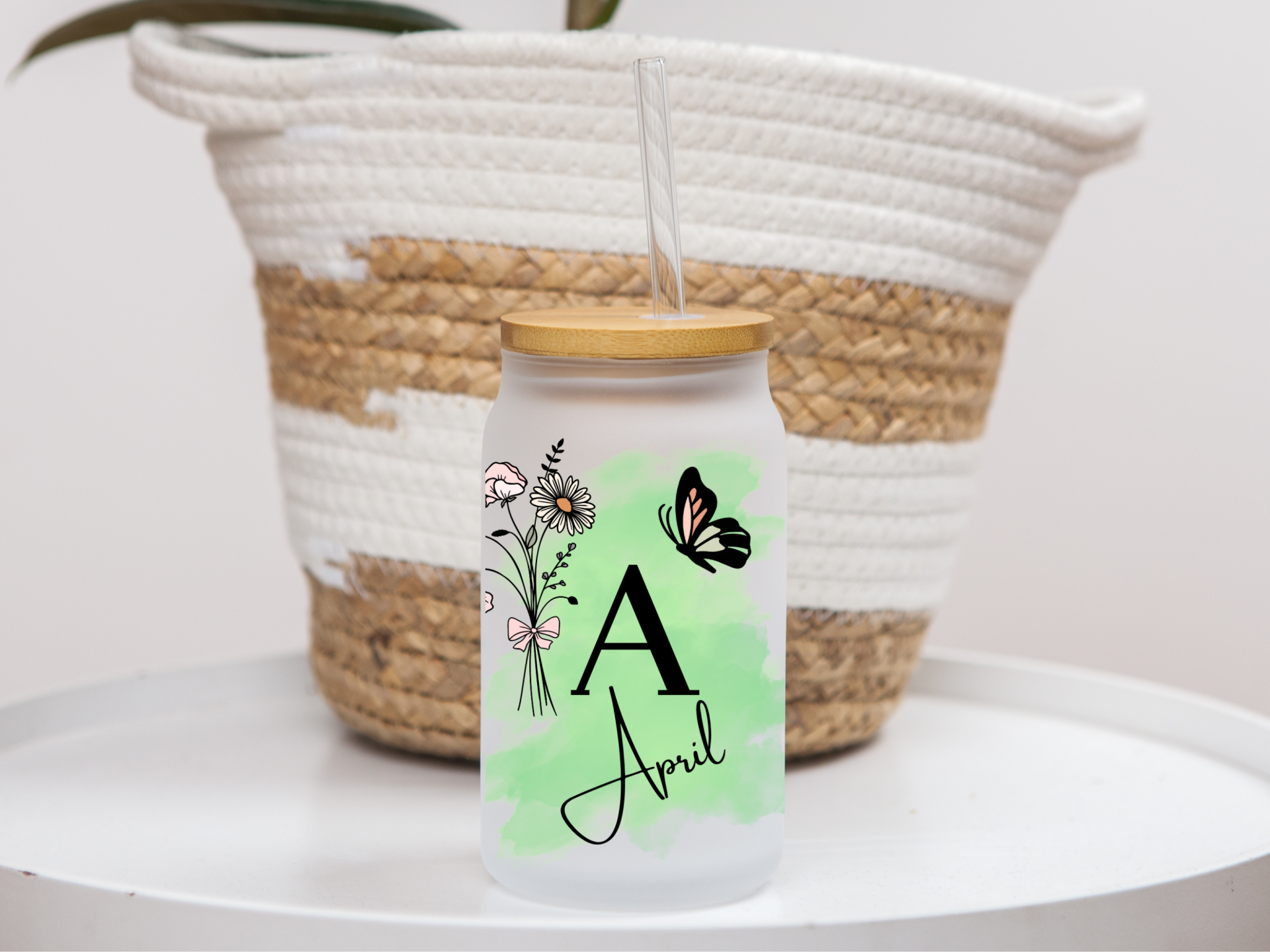 Gepersonaliseerd Glas April met Naam, Initiaal en Geboortebloem